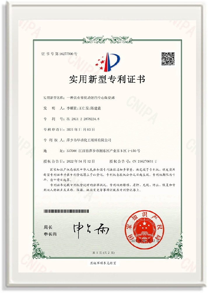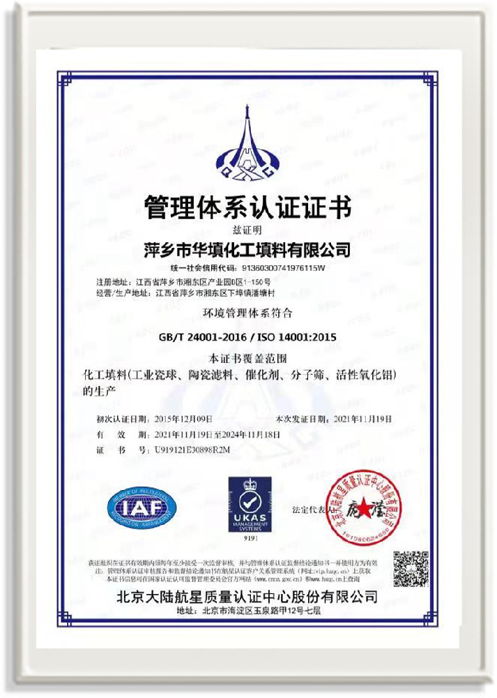 萍鄉(xiāng)市華填化工填料有限公司,位于320國道、109國道、浙贛鐵路、昌金高速公路貫穿其中,交通便利,是江西西部一顆燦爛明珠,創(chuàng)建于20世紀70年代初期,是中國石油天然氣股份有限公司“能源一號網”會員企業(yè)、中國石化物資采購電子商務網絡和中國海洋石油總公司采辦業(yè)務系統(tǒng)成員單位,是上海大學江西材料基因組工程產業(yè)研究院工業(yè)陶瓷產業(yè)創(chuàng)新聯(lián)盟基地,且通過ISO9001:2015質量管理體系、ISO14001:2015環(huán)境管理體系、ISO45001:2018職業(yè)健康安全管理體系認證的化工填料生產企業(yè)。公司擁有陶瓷、塑料、金屬填料、催化劑、活性氧化鋁、分子篩等產品生產線,現(xiàn)有固定資產3616萬元,占地面積3.8萬平方米。公司具有悠久的生產歷史、雄厚的技術力量和先進的生產工藝設備,可生產工業(yè)瓷球(支撐劑)、陶瓷、金屬、塑料質的規(guī)整、散堆化工填料及分子篩、催化劑、生化濾料、活性氧化鋁、石化助劑、活性炭、環(huán)保材料、耐火材料等系列的200多種規(guī)格型號產品。